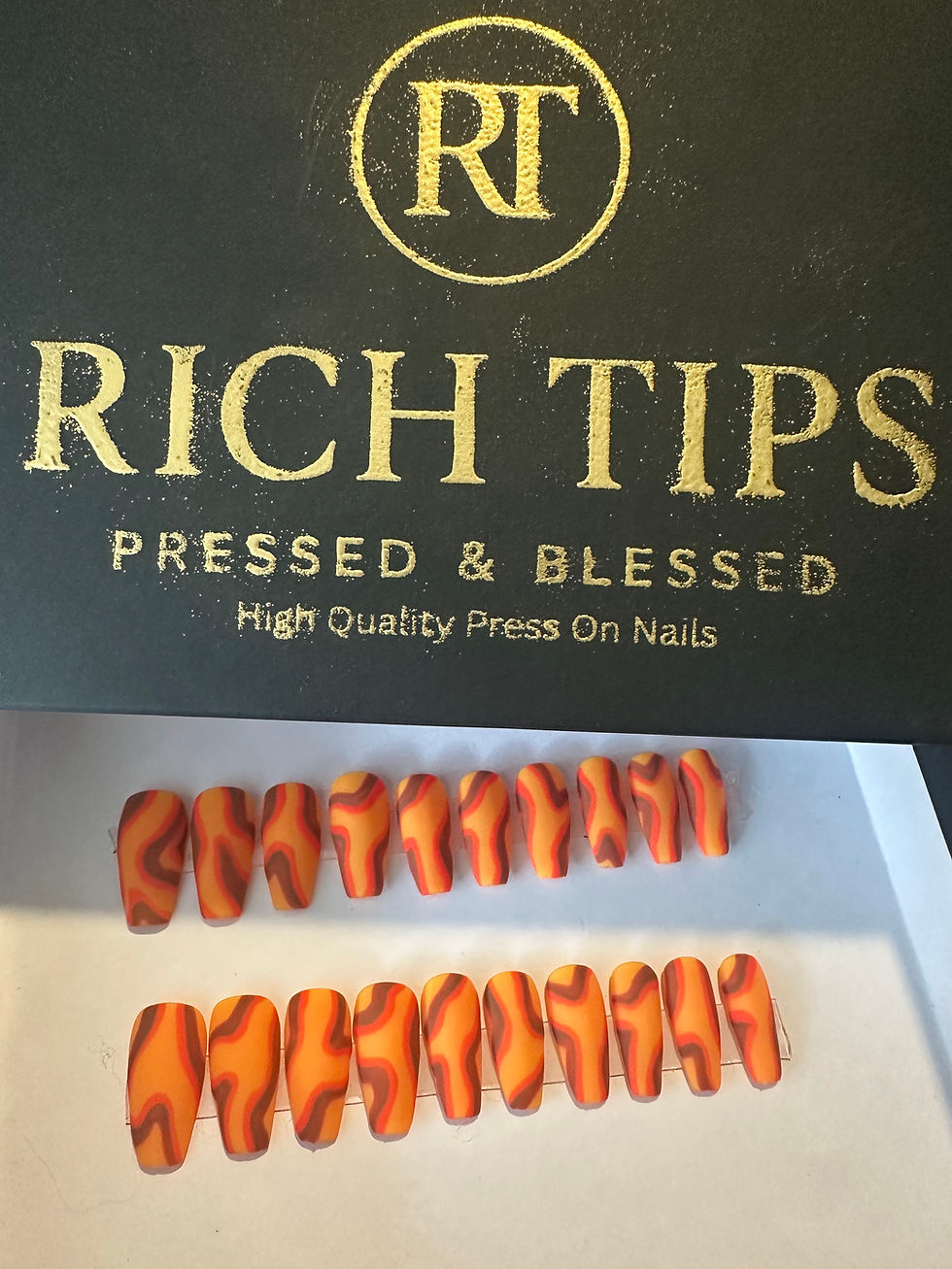 Fall Techno Stiletto Nail Set (Matte Finish)